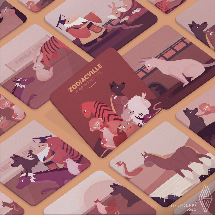 Zodiacville Runnersl is a children's fairy tale about Zodiacville's animals participated in the running festival hosted by the Dragon King. This project is an experimental mixture of traditional Korean 'minhwa' attributes and illustrator's own digital painting styles. Accordingly, folkish episodes of zodiacville animals are based on the humorous and joyful sentiment of the festival. Furthermore, numerous dilute dots were blended layer by layer, inspired by the oriental back-painting technique.