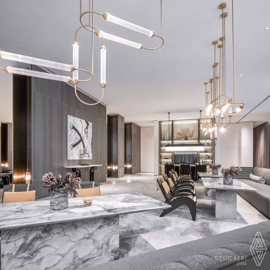 Located in the bustling downtown area of Shenzhen, Tianxi No.1 is full of commercial atmosphere and sees the hustle and bustle of the city. As a local high-end real estate, it hopes to convey a kind of elegant and secluded life of oriental humanities in the impetuous downtown. The entrance uses a wide waterscape to create a place atmosphere of the whole space, and in the core of the downtown, a sense of place is set off in a quiet way.