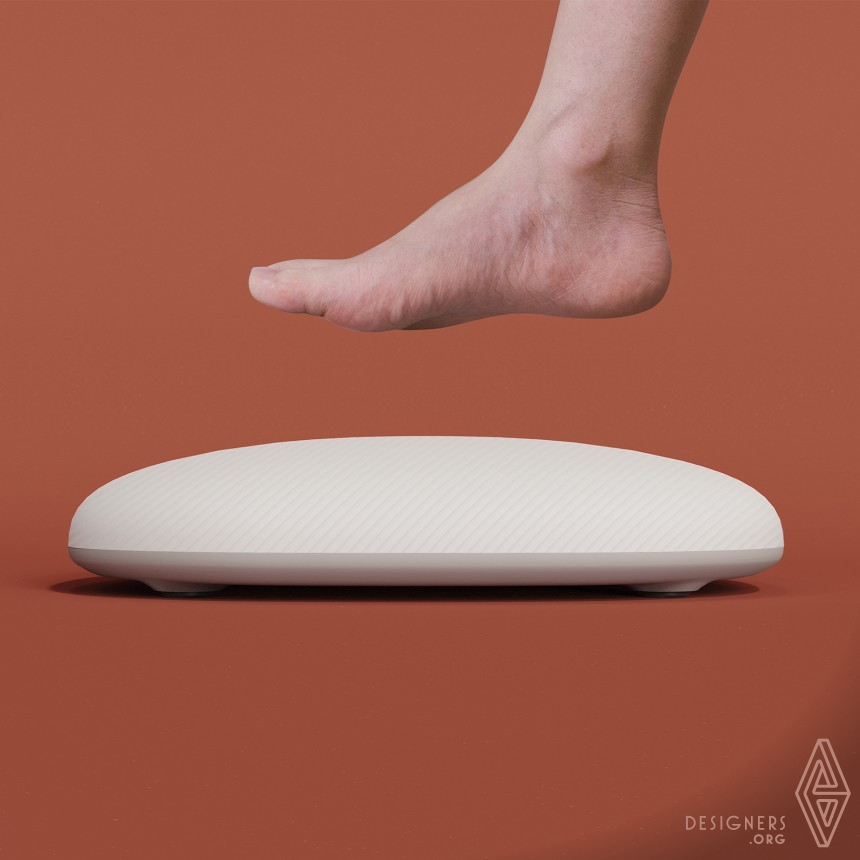 Every time when people stand on the scale, they will be cautiously looking forward to the changes of its value. Its surface is made of soft silicone material. When standing on, it is like stepping on a bulging sphere. The scale surface sinks with the change of the value and people can feel this change in an intuitive physical way. People with different weight have different depths of depressions on the scales. Displaying weight in an intuitive way brings a whole new way of experience.