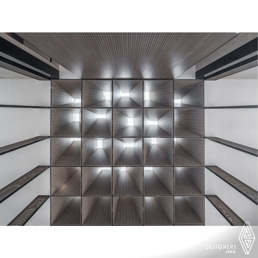 This is a sales center in a community in Yiwu, China. The biggest problem the project designer faced is that the interior space is relatively deep. Also, there is no large glass curtain wall on the exterior of the building, which blocks the natural light and leads to poor indoor lighting. The design strategy is to employ skylights and introduces natural light in through the fifth facade of the building, thereby solving the problem of insufficient lighting in the interior space.