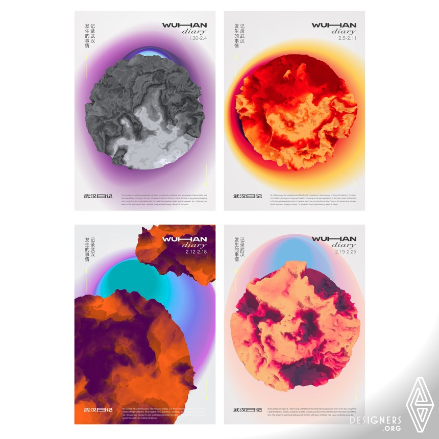 The Chinese people's concept of nature and world outlook are all firmly based on our land. The designer used programming to present a series of case studies on terrain-based visual languages and collected public opinions during the pandemic period. He used the color and density of rolling mountains to present the social environment and my emotions while under the pandemic situation, which creates a visual diary.