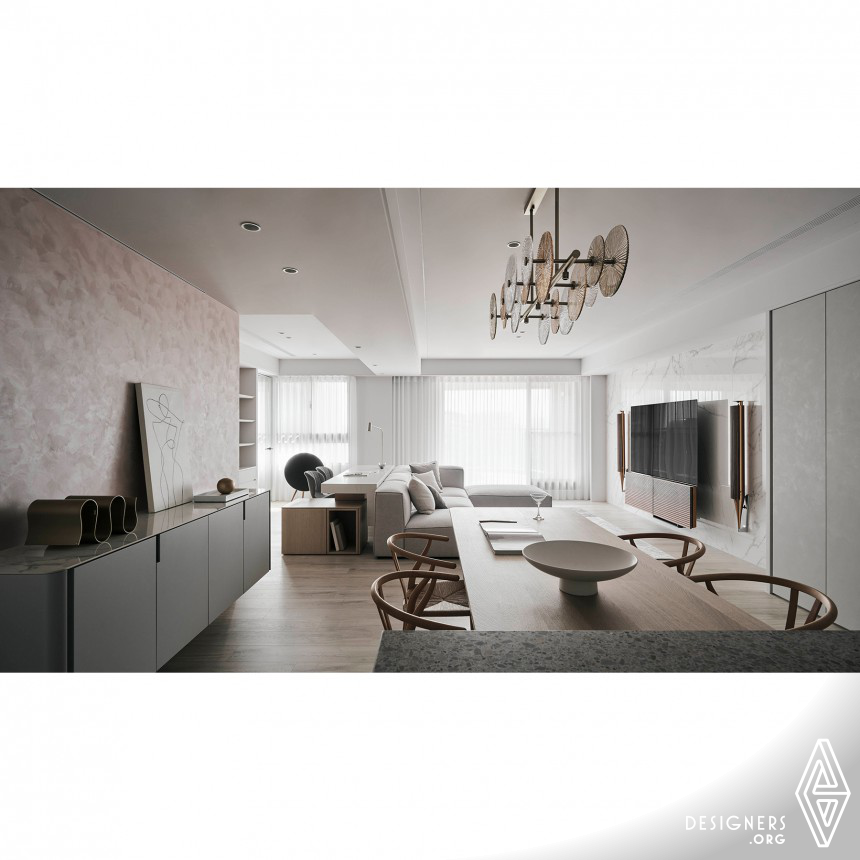 Lights and shadows are being used to create different sentiments of shades of flowers. At the manufactured lighting designs, the designer applied the indirect lightings of the aluminum light bands to deliver a balanced and soften light-shadow feeling. On the other hand, the vertical LED lightings have strong focusing; with different chandeliers and standing lamps, another kind of light-shadow atmosphere is created within the space. The special paint is used on the wall played a unique role in transforming atmospheres, as if a metaphor of the time-changing sensations.