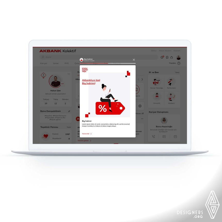 Kolektif is a web application where employees can track their human resources work and socialize. In this application, they can create and customize their profile pages, follow announcements, and make updates. At the same time, employees can see their colleagues' profiles, like their posts, and view the company's stories. Employees can also thank their colleagues or other teams by using the appreciation page. The new database is created through all these personal entries for employee-specific training and activity suggestions.
