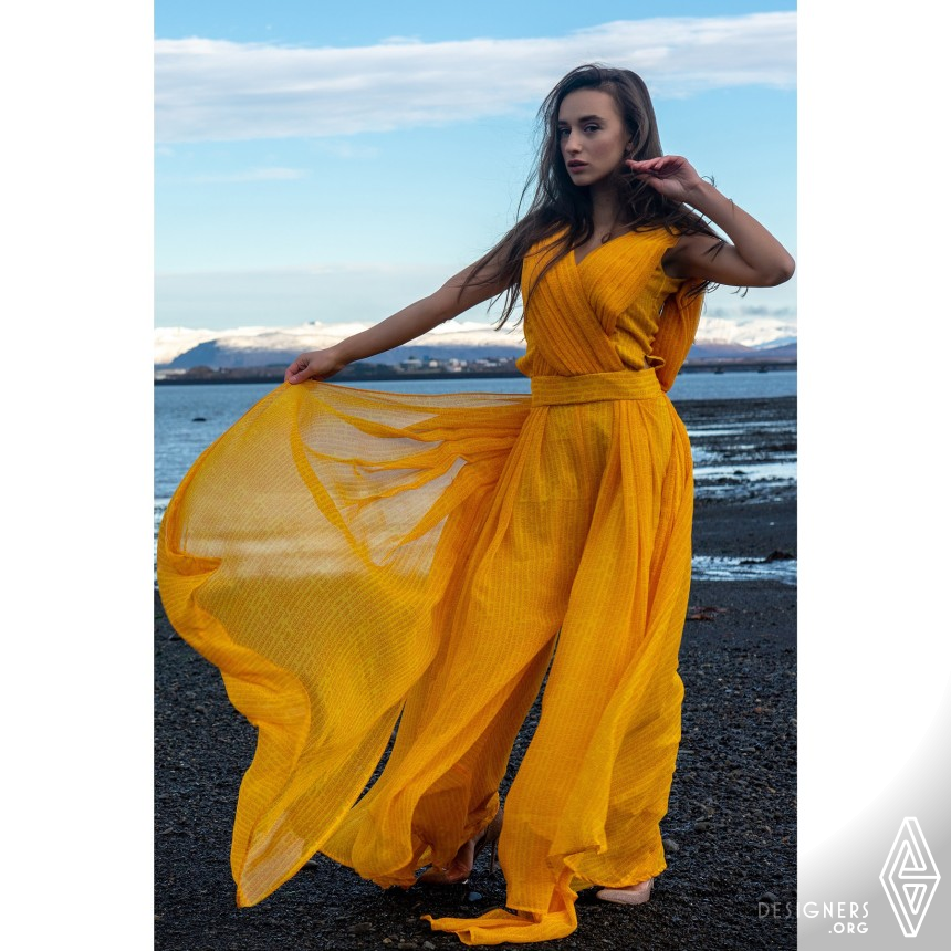 The jumpsuit is done on Indian ethnic printed fabric and can be donned on both casual outings and special occasions. The yellow color signifies both purity and sensuality and adds to the appeal. The inspiration is derived from ancient Indian scribbles coupled with modern design sensibilities. The idea was to design a dress that can act as a comfy jumpsuit and at the same time gives a high fashion statement.