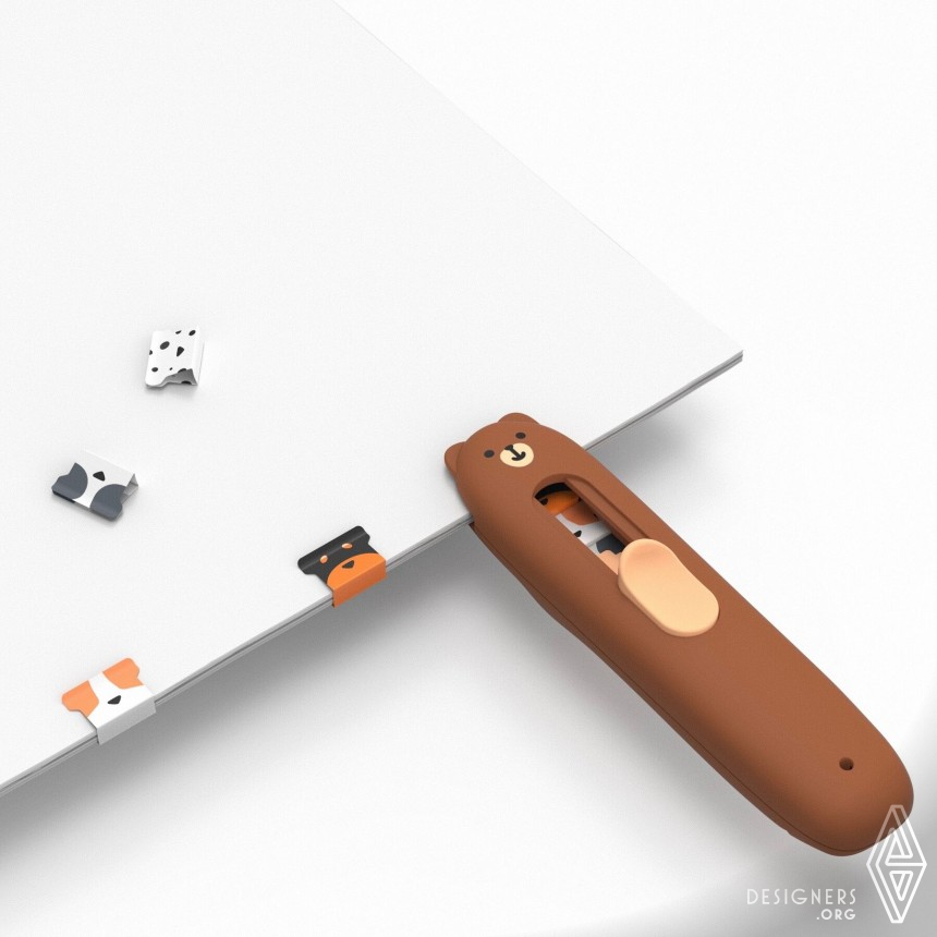 Click is a humanistic design with practicability. Its cartoon animal shapes are appropriate for a product whose primary user group is teenagers. Its innovative structural design and careful consideration of ergonomics allow it to perform automatic and continuous clamping, which increases work efficiency. The use of simple materials and replaceable components makes it sustainable.