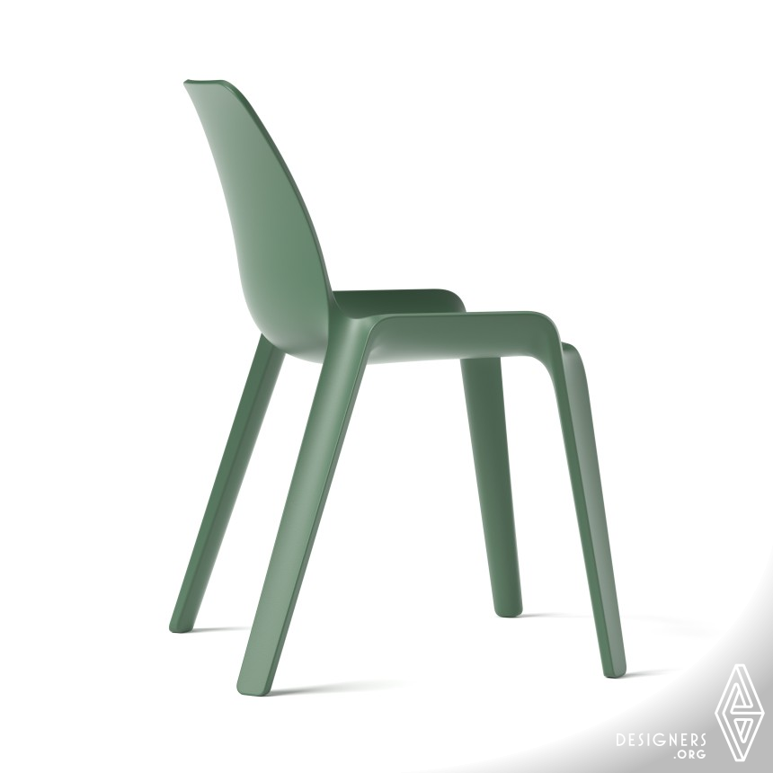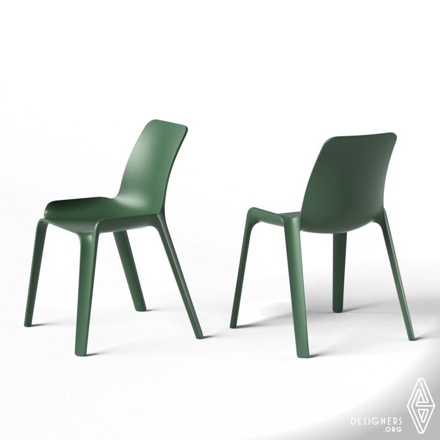 The Pinch Chair is a unibody, stackable, plastic chair that reimagines traditional designs with a fresh aesthetic more suited to contemporary architecture and landscapes. Designed with a unibody logic, the plastic sheet transforms into a complete chair with simple pinching and pulling moves. Its seamless, cohesive appearance creates an intuitive and dynamic visual image. The design allows for stacking during storage and stable placement on a dining table when flipped upside down, which is convenient for restaurant staff to clean the floor when closing.