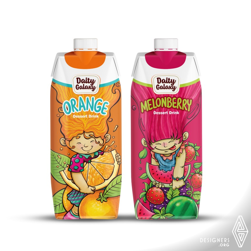 It is clear that this package is designed for children. The harmony between designs in different flavors is clear. All have a rhythm with beautiful colors and are designed according to a harmonious pattern, the hair of the characters is pulled up in a different way to focus the eye on the name and type of dessert. In this design, to draw more attention to the packaging, fantasy and childish characters are used, which are executed with the watercolor technique in the illustration part.