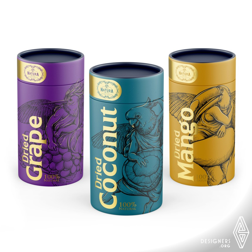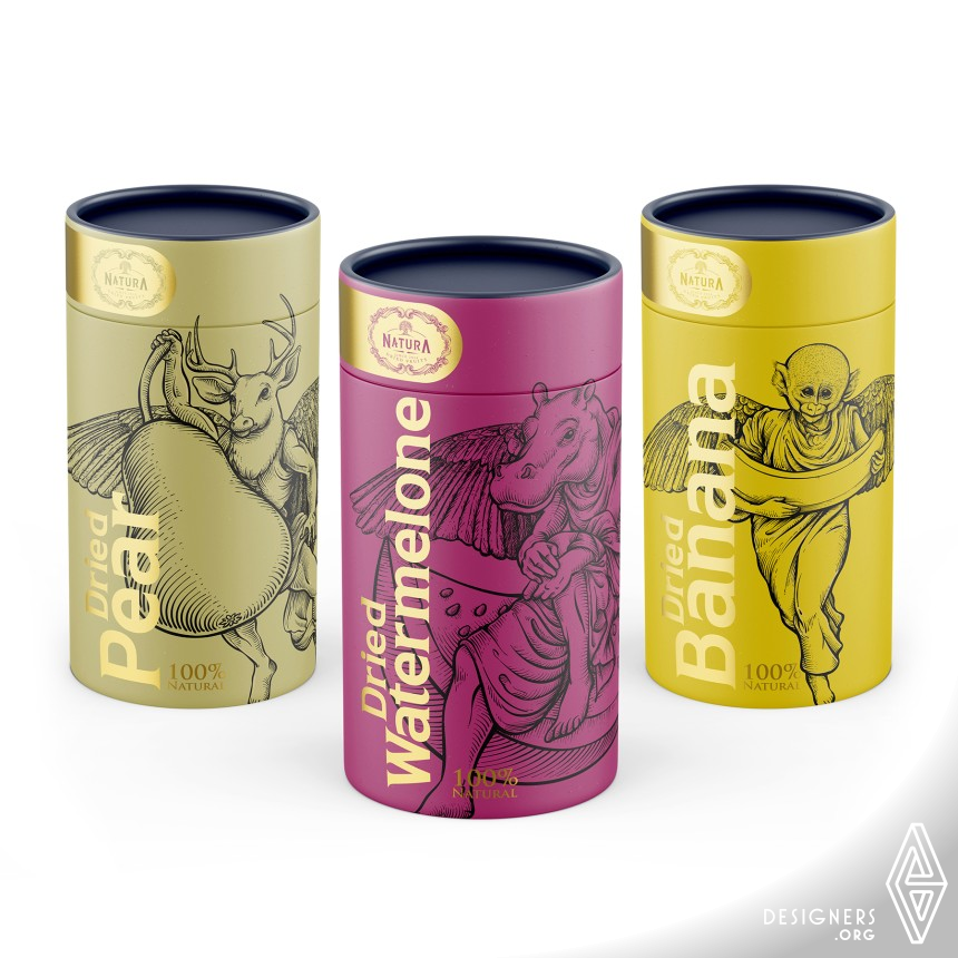 This design has benefited from the combination of artistic sculptures, fruits, and animals, although it should be noted that subtle changes have been made artistically. The pictures tried to establish a clear connection between animals, fruits, and culture. But since the main theme of the design is to preserve the ecosystem, in addition to the herbivorous animals, in some places wild animals (hunters) have been used as a symbol of power. In this packaging, simple and powerful colors are used to attract more attention, and degradable packaging is used to protect the environment.