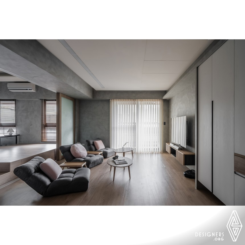To optimize the spatial layout, adjustments were made to reduce the size of the master bedroom, allowing for the creation of a dedicated dressing room. In its place, a Tatami room was established, featuring a high rack combined with sliding doors to accommodate various functions including fitness, guest accommodation, and leisure activities. The walls flanking the entrance were extended to incorporate additional storage solutions, addressing the challenge of limited space.