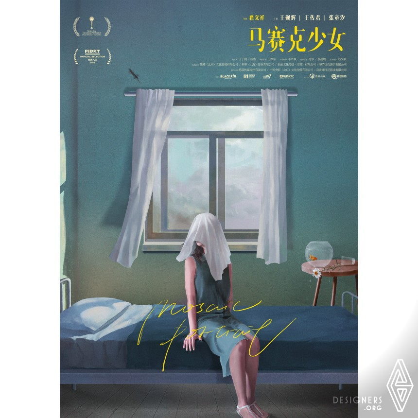 The art film "mosaic portrait" was released as a concept poster. It mainly tells the story of a girl who was sexually assaulted. White usually has the metaphor of death and the symbol of chastity. This poster chooses to hide the message of "death" behind a girl's quiet and gentle state, so as to highlight the stronger emotion behind silence. At the same time, the designer integrated artistic elements and suggestive symbols into the picture, causing more extensive thinking and exploration of film works.