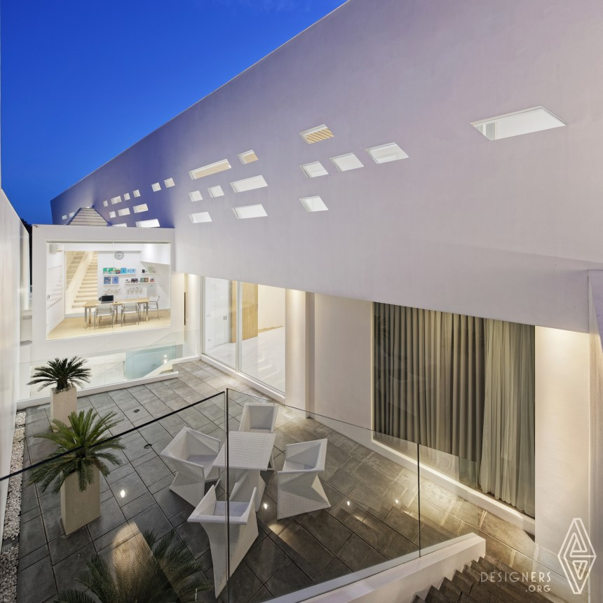 Z Line House is one challenging project of private residential that is built through a long five years of design and construction. The geometry of the house is aimed to maximize the existing site's potential, a series of calculated geometric and sculpture like interventions on the facade exploits the tension between conflicting elements. The geometry is optimised in such a way to control the water flow from the rainfall condition in tropical area. The result is an optimised geometry for a specific site that was parametrically calculated to have an optimum performance.