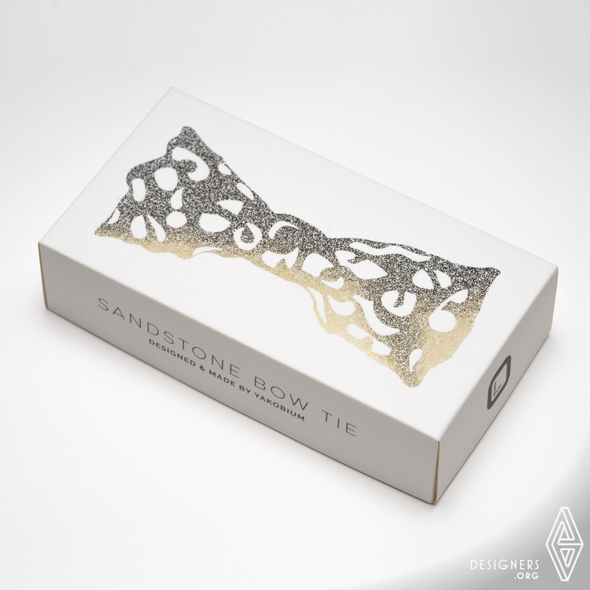Using their own process, the Yakobium designers were able to transform sandstone to this very unique accessory piece. The Yakobium Bow Tie is robust but lightweight and can easily be worn to any occasion. Shape, color, size as the rest of the item can be customized. The sandstone bow tie is complemented by handmade packaging.