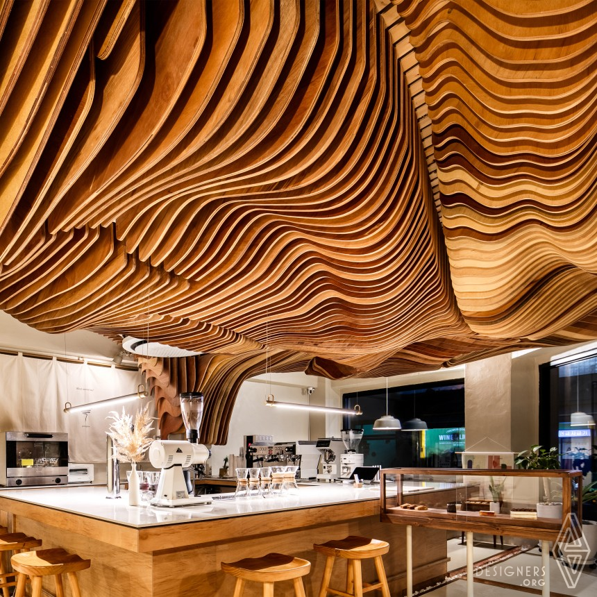 This small warm wooden feel cafe located on the corner of crossroad within a quiet neighborhood. The centralized open-preparation zone makes a clean and extensive experience of barista's performance to visitors everywhere that bar seat or table seat in a cafe. The ceiling object called "Shading tree" starts from the backside of the preparation zone, and it covers the customer zone to makes the entire atmosphere of this cafe. It gives an unusual spatial effect to visitors and also become a medium for people who want to be lost in thought with flavorous coffee.