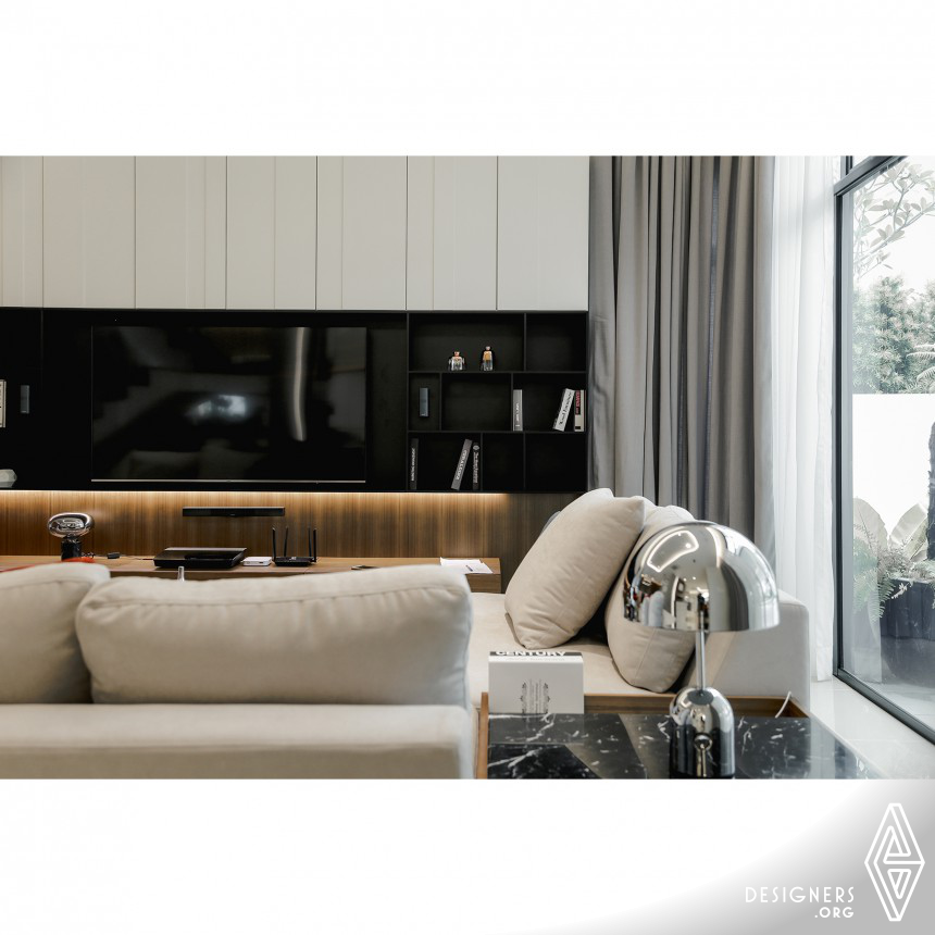 EL Residence was inspired to be designed with a new burst of creativity through texture and materials, with a design that focuses on customised layouts. A bold and mature theme became the main design idea with a touch of vibrant colour and curved shape design element to soften the primary design approach. Materials such as chrome steel, metal elements, natural stones and marble are used to bring out the overall design approach, while feminine elements in the form of organically-shaped ornaments and furniture are incorporated to balance off the masculine vibe and light up the inner space.