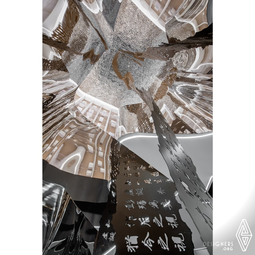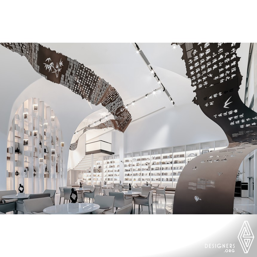 This project is inspired by the 5000-year Chinese history. This project combines the elements of the library to create a scholarly atmosphere, which has enriched the core of the space. Some special materials have been used to involve multi-level aesthetic experience, which are simple but impressive, so that the minds of visitors can be washed and sorted out here. The natural form, line and format of the book scroll are used as artistic installation, and it is also the main line that runs through the whole sales office. It expresses simplicity, creativity and integrity in design.