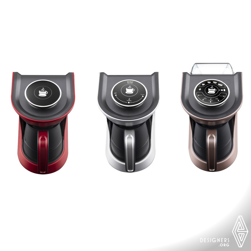 Kopuklu stands out with the illuminated control panel located on the top , spray painted side frame and the hot print image on the side offering a stylish design that you will always want to keep on the counter. To choose between different taste settings, choose the amount of coffee you want to make or to change the cup size, all you have to do is to rotate the ring around the panel and click. The back illuminated panel allows you to obtain a selection of well-cooked, medium, rare and local authentic taste options.