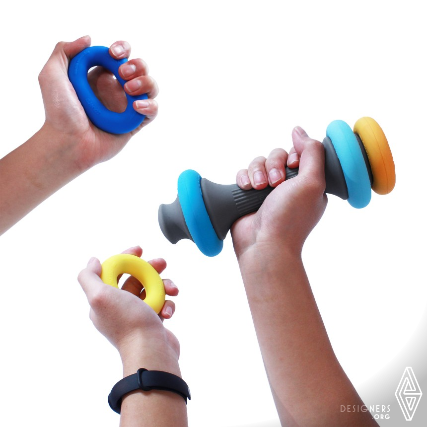 Is a safe and good hold fitness tools for all ages. Soft touch coating on the surface, providing a silky feel. Made by 100 % recyclable silicone with special material formula producing 6 different levels of hardness, with different size and weight, provide optional grip force training. Hand gripper also can fit onto the rounded notch at both sides of the dumbbell bar adding weight to it for arm muscle training up to 60 types of different strength combination. The eye-catching colors from light to dark, indicates the strength and weight from light to heavy.