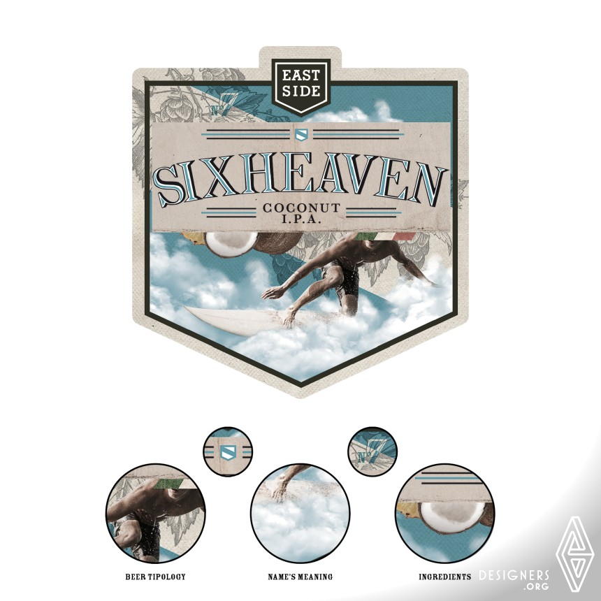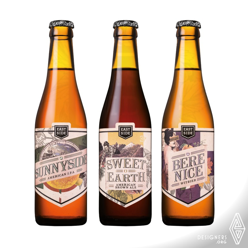 A craft beer in a small town in central Italy, every beer has a story, every story is told on its label. As well as being elegant and versatile, the collage technique allows to insert some visual elements that highlight the identity of the product, such as references to the meaning of the name, to the beer typology and to its ingredients. The logo design, which represents the corporate identity, is based on a simple shape. This shape was reproduced on the die-cut of the labels and on the symbol system of every single beer using a customization which is both colourful and heraldic.