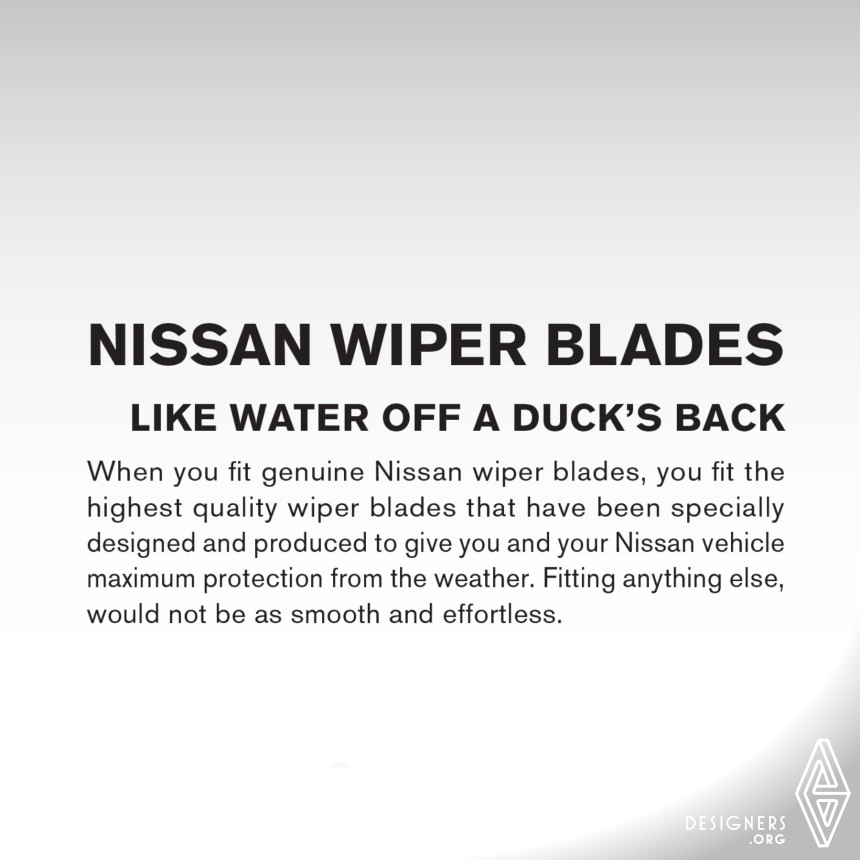 Nissan Parts and After Sales is a division of Nissan South Africa. With the summer rain coming in November, Nissan wanted to remind their customers about the importance of checking wiper blades during these wet months. When you fit Nissan genuine wiper blades, you give yourself and your car the same protection from the rain as ducks have to protect them from water.