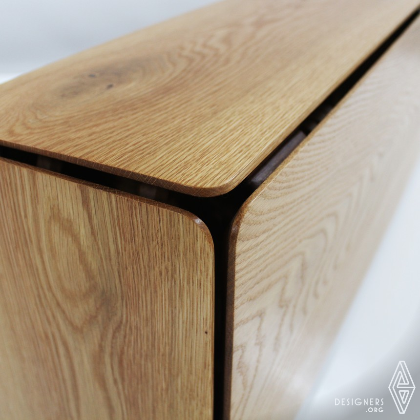 The Lido folds into a small rectangular box. When folded, it serves as a storage box for small items. If they lift the side plates, joint legs project out from the box and Lido transforms into a tea table or a small desk. Likewise, if they completely unfold the side plates on both sides, it transforms into a large table, with the upper plate having width of 75 Cm. This table can be used as a dining table, especially in Korea and Japan where sitting on the floor while dining is a common culture.